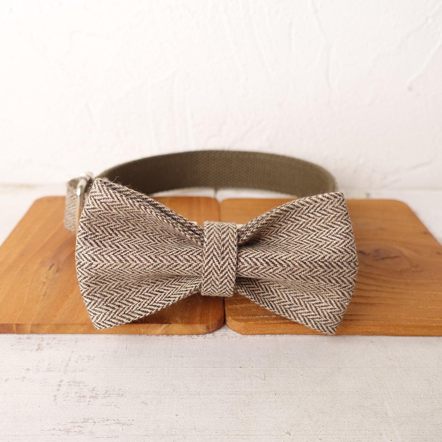 - Detachable Bow Tie: A detachable, self – tie bow tie made of the same herringbone fabric