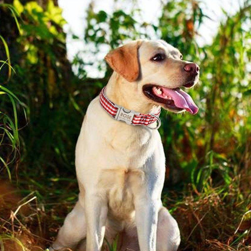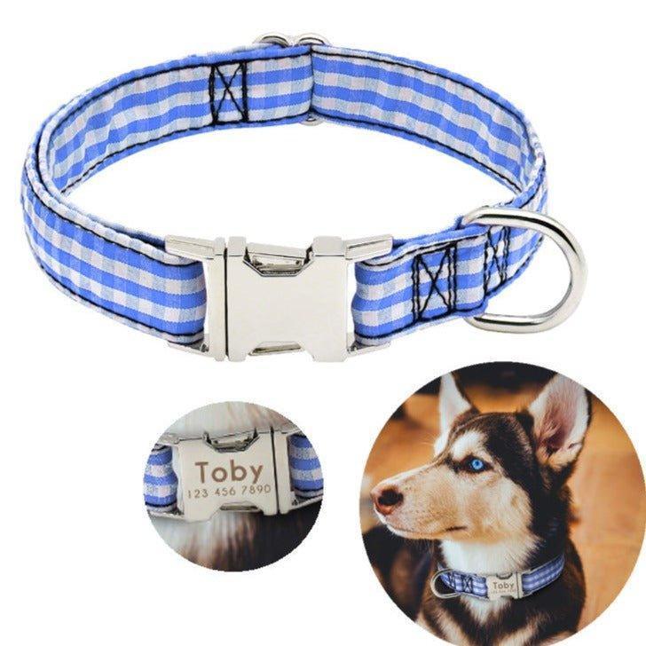 This personalized dog collar offers both style and functionality. It provides a comfortable and secure fit for dogs, and the engraved name plate ensures easy identification. The durable materials used make it a long – lasting choice for pet owners.
