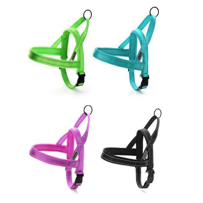 This dog harness offers a perfect blend of safety, comfort, and personalization. It features reflective strips for better visibility and is designed to distribute pressure evenly, ensuring a comfortable experience for your pet. The personalized section helps keep your dog identified and safe.