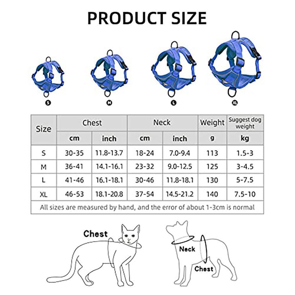 - Adjustable Positions: Four adjustable positions on the harness for an even force distribution and a more comfortable fit according to the pet’s body shape.