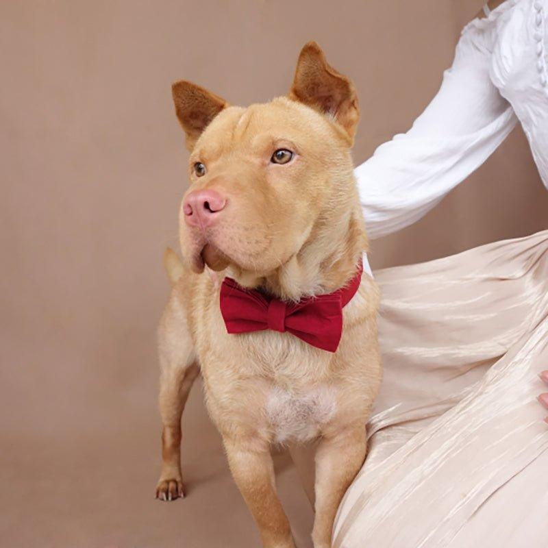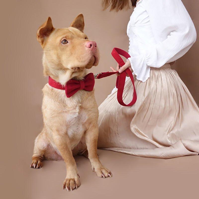 - Material: Made of high – density polyester and a soft, suede – like or velvet fabric for the bow tie, with woven fabric (likely nylon/canvas) for the collar and leash, and shiny stainless – steel – colored metal components.
